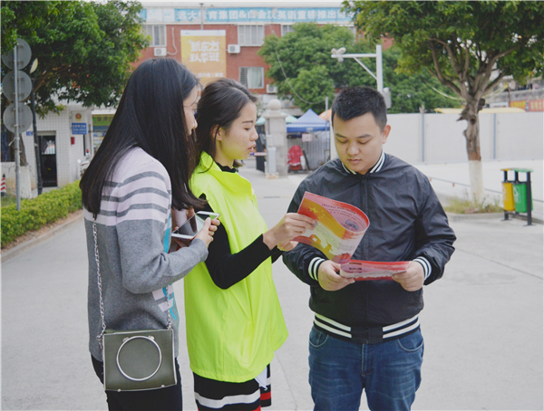 向学生发放传单