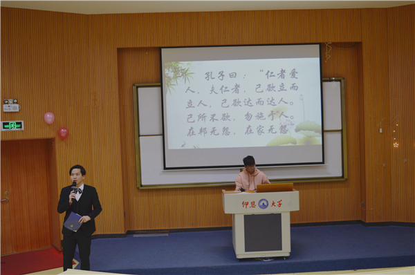 本次道德讲堂通过看短片、诵经典、讲故事、做承诺、谈感悟、读规范、送友善七个环节进行展开。通过观看《One Day》友善短片,让同学们感受关爱与友善的传递就是从身边人身边事做起;聆听爱邻舍社工服务总干事黄玲讲述“成为友善”还是“行为友善”的区别及自身的公益故事,学会立践于行。期间,全体师生一起诵读了《论语》、《孟子》的经典语录片段以及《公民道德基本规范》。