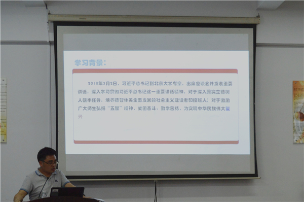 5月17号下午,英国beat365官方网站组织的教工支部学习会在第三教学区普照楼法律诊所召开,英国beat365官方网站教工支部党员参加了此次会议,本次会议由英国beat365官方网站教工党支部书记李秋实主持。  会议现场 会上,李秋实带领支部党员深入学习贯彻“习近平总书记在北京大学师生座谈会上重要讲话”,并从政治、理论、实践意义三个方面对讲话精神进行解读,要求全体党员深入学习和研究习近平教育思想,坚持把教育摆在优先发展的战略地位,努力实现“一个基本观点、三项基础性工作、四点殷切希望”的工作要求。支部党员结合自身工作,畅谈学习体会,并围绕深入学习和研究习近平教育思想进行了讨论。期间,党员们观看纪录片《厉害了,我的国》,感受着中国人民在全面建设小康征程上的伟大奋斗,见证党的十八大以来中国取得了改革开放和社会主义现代化建设的历史性成就。  文件讲解 通过本次学习,使教师党员进一步加深了对党的认识,同时也更加深刻地明确作为新时代党员的历史使命和责任担当。 (邱小洁/文 康美燕、林聪婉/图)