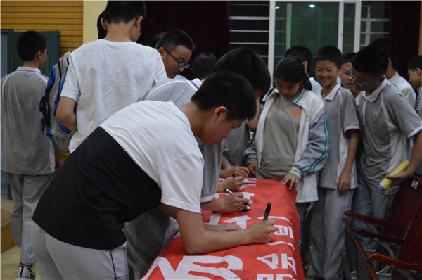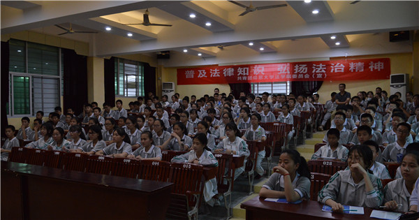 通俗易懂的言语、图文并茂的画面,生动形象地使在场师生对“校园暴力”有了全面的认识,赢得了同学们的阵阵掌声。期间,工作人员组织在场师生一同观看法制图片展览并进行横幅签名活动。