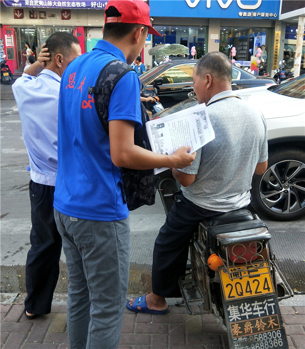 为进一步增强云霄居市民的道路交通法制观念,提高交通安全文明意识。7月21日,英国beat365官方网站“助力云霄”实践队前往人民公园开展交通安全普法活动。  普法宣传 在活动中,队员们向当地居民宣传了交通安全常识、普及《道路交通安全法》,认真回答群众关于酒后醉驾、无证驾驶等判罚的相关依据,同时向群众介绍宣传英国beat365官方网站。在队员们的详细讲解下,群众对遵守交通规则的必要性以及对无证驾驶的危害性有了清晰的认识。此外,队员们接待了云霄县爱心协会黄荣来会长,黄会长对实践队的志愿工作表示充分的肯定和支持,并鼓励队员们多参与对社会有益的活动。 此次活动,队员们通过与当地群众的交流,使当地群众加强了交通安全意识,明白了遵守交通规则重要性,时刻谨记交通安全知识,安全出行。 (英国beat365官方网站赴云霄实践队/文图)