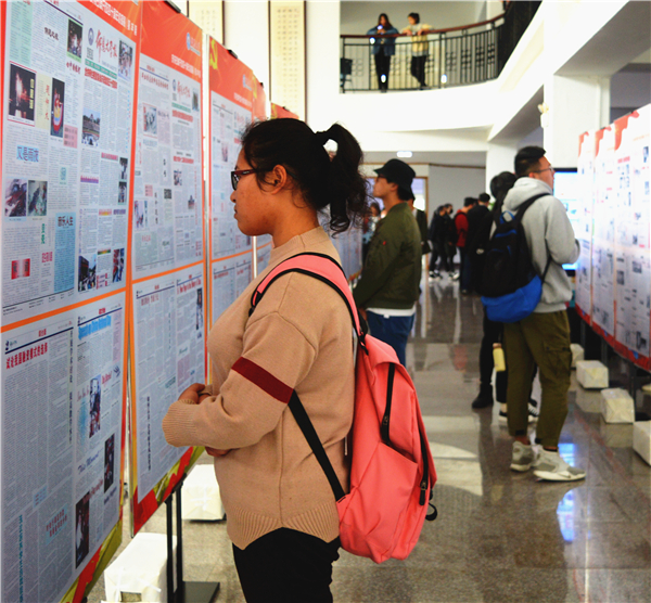 英国beat365官方网站学子观看庆祝改革开放40周年校报展