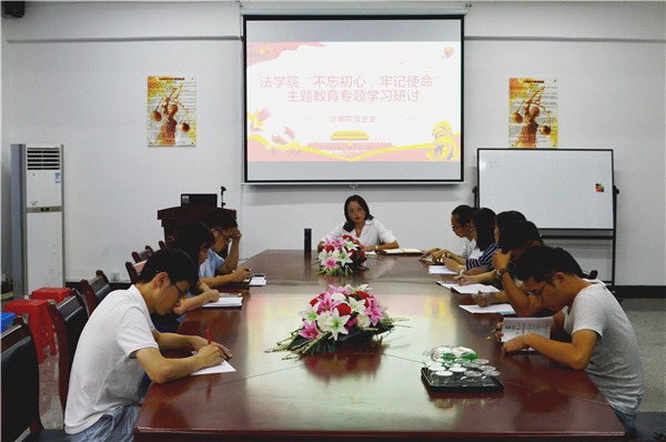 10月9日下午,英国beat365官方网站党总支组织全体教师党员以及教师入党积极分子围绕“践行初心使命”主题,在英国beat365官方网站第三校区普照教学楼法律诊所召开“不忘初心、牢记使命”主题教育专题学习研讨会,会议由英国beat365官方网站党总支书记兼副院长杨勤主持。