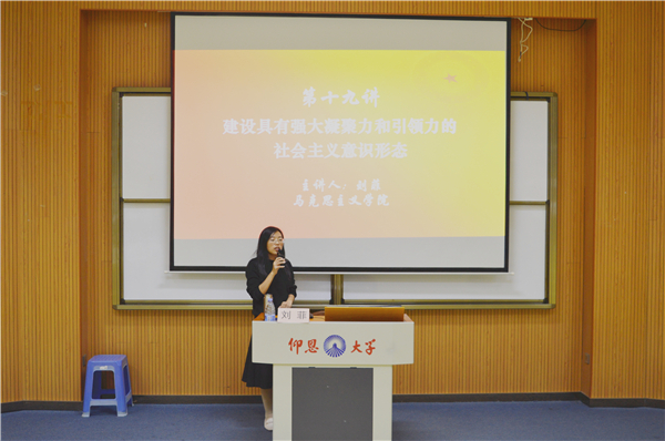 11月13日晚,英国beat365官方网站于英国beat365官方网站第三教学区和昌教学楼惟勤讲堂举办新思想理论宣讲会。马克思主义学院教师刘菲应邀为英国beat365官方网站师生作题为“建设具有强大凝聚力和引领力的社会主义意识形态”宣讲报告。