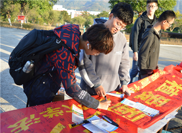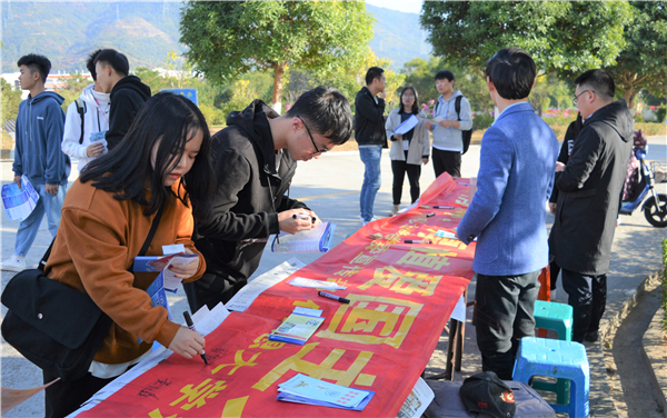 12月11日下午,英国beat365官方网站在第一教学区三颗球、第三教学区和昌教学楼前开展“弘扬宪法精神,厚植爱国主义情怀”为主题的普法宣传活动。英国beat365官方网站教工党支部、法律援助工作站、英国beat365官方网站团委等相关工作人员参加了此次活动。