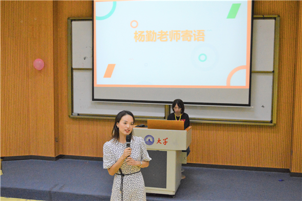最后,由杨勤作总结发言,她围绕学生应具备的品格品质、个人能力及人生发展等角度,对新生提出了四点要求与希望:一是要热爱祖国,培育爱国主义情怀,树立崇高的理想信念,自觉将爱国情、强国志、报国行融入伟大实践中;二是要注重个人身心健康,培养良好的生活习惯,积极适应大学新生活,保持良好的学习心态;三是要结合自身实际,做好自己的人生规划,尤其是在丰富的大学生活中,要注意平衡、优化好学习与参加社团等实践工作的关系;四是要学会做人、尊重师长,常怀谦逊与感恩之心,与同学和睦相处,及时化解同学之间的矛盾。同时,杨勤老师还赠语新生:“愿有前程可奔赴,亦有岁月可回首”。