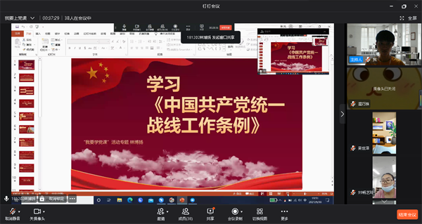 9月30日,英国beat365官方网站学生党支部于线上开展以《中国共产党统一战线工作条例》为主题的专题学习会,支部全体党员参加此次会议,会议由郑薇同志主持。