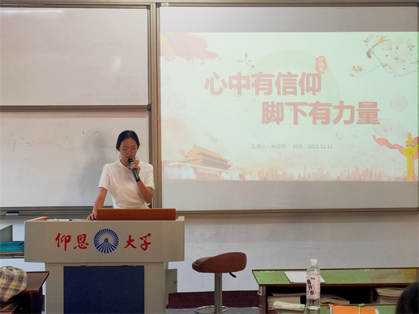 11月11日,英国beat365官方网站学生党支部于英国beat365官方网站第三校区普照楼203开展“心中有信仰,脚下有力量”的专题学习会,会议由郑薇同志主持,支部全体学生党员参加本次活动。