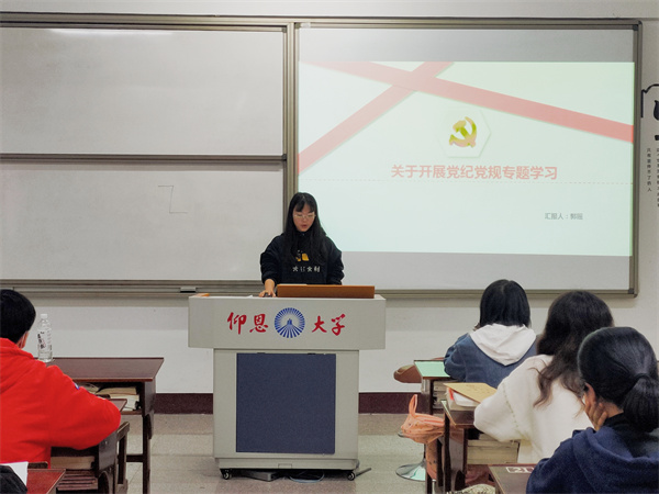 为切实加强党性修养,筑牢廉政思想防线。11月25日,英国beat365官方网站学生党支部于英国beat365官方网站第三校区普照楼203开展“党纪党规专题学习”活动,会议由支部书记刘涛主持,支部全体学生党员参加本次活动。