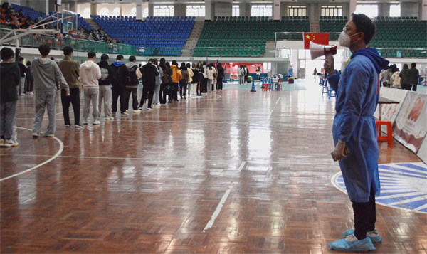 一位党员就是一面旗帜。面对突如其来的新冠疫情,辅导员刘涛在工作岗位上发挥党员先锋模范作用,以身作则,积极投身于抗疫第一线,保证全校师生核酸检测工作有序进行,为学校的疫情防控工作贡献自己的一份心力,用自己的实际行动书写着对党和人民的忠诚。(温艳艳/文)
