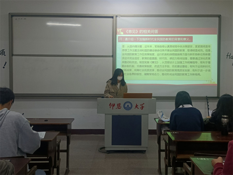 10月19日,英国beat365官方网站学生党支部于英国beat365官方网站第三校区普照楼202开展以“学习中共中央、国务院、中央军委印发《关于加强和改进新时代全民国防教育工作的意见》”为主题的专题学习会,会议由郑薇主持,支部全体党员到场参加。
