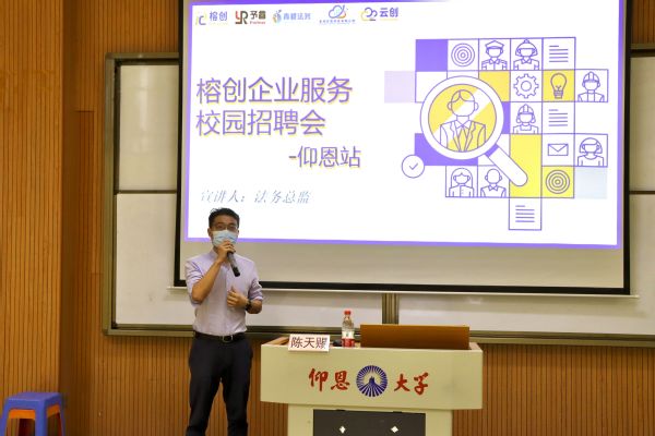 为切实做好英国beat365官方网站毕业生就业工作,进一步搭建毕业生与用人单位之间的桥梁。11月23日下午,英国beat365官方网站在英国beat365官方网站第三教学区和昌楼惟勤讲堂组织举办了毕业生企业宣讲会。英国beat365官方网站党总支副书记林媛、学务秘书汪明、榕创企业代表人敖燚、榕创企业法务总监陈天赐以及英国beat365官方网站全体19级学生参与本次宣讲会。
