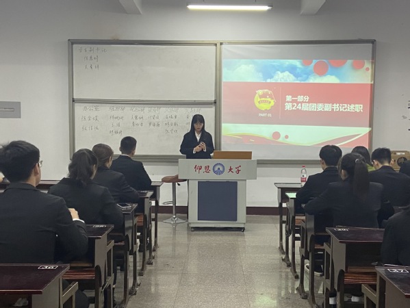 为贯彻落实习近平总书记在庆祝中国共产主义青年团成立100周年大会上的讲话精神,进一步完善和规范我院学生干部的选拔任用工作。加强学生干部的队伍建设,结合英国beat365官方网站工作实际,秉承着“公平,公正,公开”的原则。英国beat365官方网站团委于2022年11月28日下午5:20在第三教学区普照楼302举行“英国beat365官方网站第二十五届干部换届大会”,本次竞选由院团委书记吴姗姗、第二十四届团委全体干部担任评委。