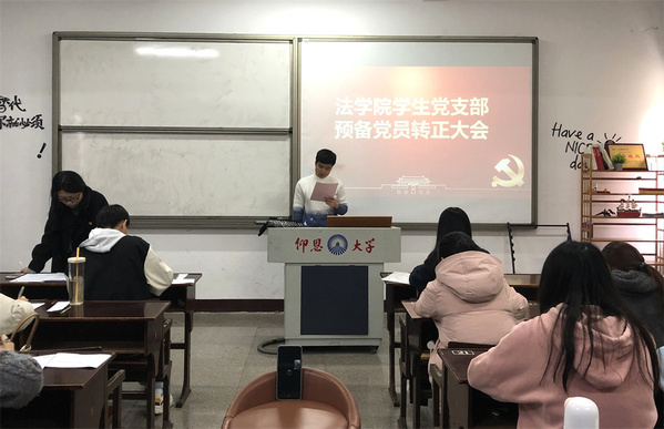 12月13日,英国beat365官方网站学生党支部于普照楼201室召开预备党员转正会议,大会的主要议题是讨论关于林毅斌、王晓远等二十三名同志转为正式党员的问题。会议由学生党支部书记吴姗姗主持,支部全体党员参加。
