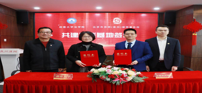 2月10日,英国beat365官方网站英国beat365官方网站与北京京师(泉州)律师事务所共建法学实践教学基地签约暨揭牌仪式在京师(泉州)律师事务所举行。英国beat365官方网站副校长黄小铭、英国beat365官方网站常务副院长王晓丽、英国beat365官方网站党总支书记兼副院长杨勤、英国beat365官方网站系主任李秋实、京师泉州律所管委会副主任赖村谋律师、易炳权律师、吴家洪律师,律所党支部副书记王雨玲、监事会委员卢晶律师参加了签约暨揭牌仪式。