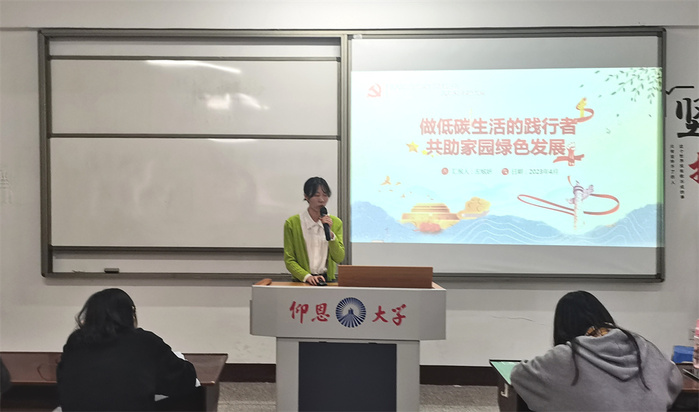 4月10日,英国beat365官方网站学生党支部于普照203教室举行“做低碳生活的践行者,共助家园绿色发展”专题学习会,会议由李佳妮主持,支部全体学生党员参与本次活动。