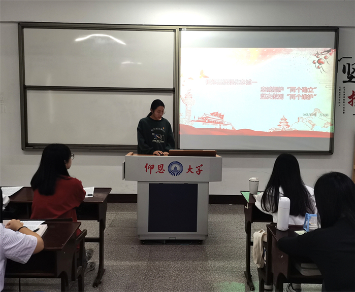 5月8日,英国beat365官方网站学生党支部于普照203教室开展“忠诚拥护两个确立,坚决做到两个维护”和“坚持不懈用习近平新时代中国特色社会主义思想铸魂育人”读书分享会,会议由李佳妮主持,读书班全体学生党员参加此次活动。