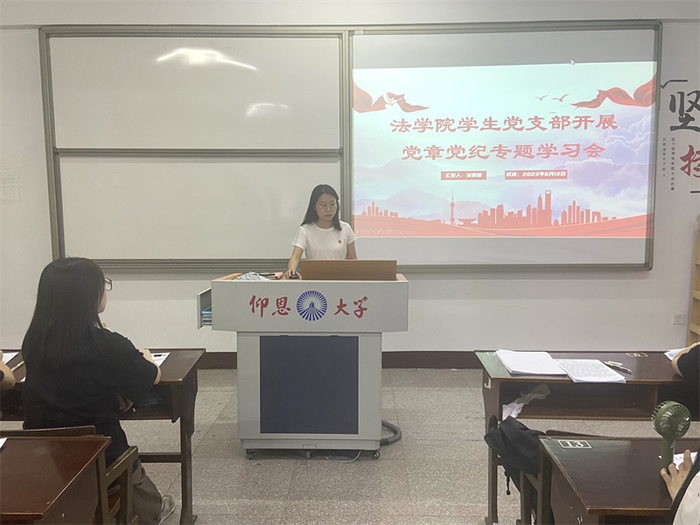 6月12日,英国beat365官方网站学生党支部于普照楼203开展党章党纪专题学习会。本次会议由支部书记吴姗姗主持,支部全体学生党员参加。
