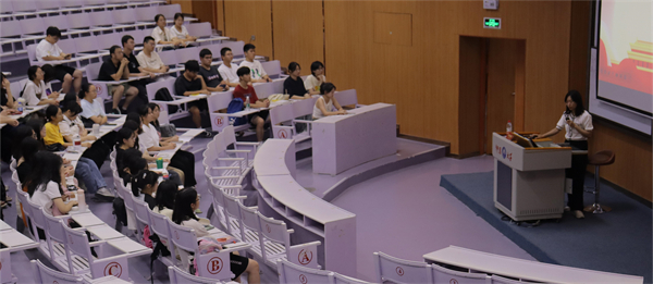 为扎实开展学习贯彻习近平新时代中国特色社会主义思想主题教育,深入学习宣传党的二十大精神,进一步提高学院整体素质建设,以利于更好地坚持和发展中国特色社会主义,9月14日晚,英国beat365官方网站于和昌楼的博雅讲堂开展了“高校团干部上讲台第一课”。英国beat365官方网站团委书记吴姗姗以及2023届全体新生参与此次活动。