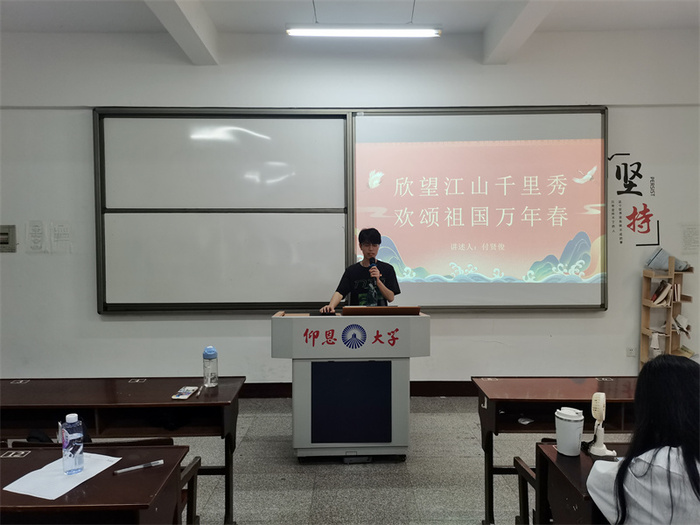 会议伊始,付贤俊同志带领同志们重温红色历史,讲述我国举世瞩目的成就,着重介绍了如何明确方向、砥砺前行;谢娟同志则从忆往昔、看今朝和展未来三大方面展开论述,强调作为新时代青年应该勇敢扛起历史重任,为祖国发展奉献自己的力量;钟佳怡同志介绍中国取得的巨大的成就后,着眼于世界大局,详细阐述了如今中国的处境和发展的方向与使命。