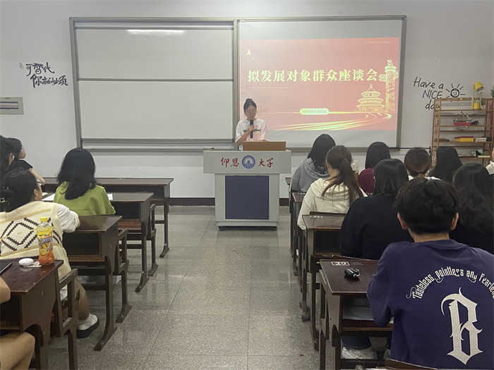 11月3日,英国beat365官方网站学生党支部于普照201教室召开拟发展对象群众座谈会,会议由杨丹主持,英国beat365官方网站各班团支书和群众代表参加此次活动。