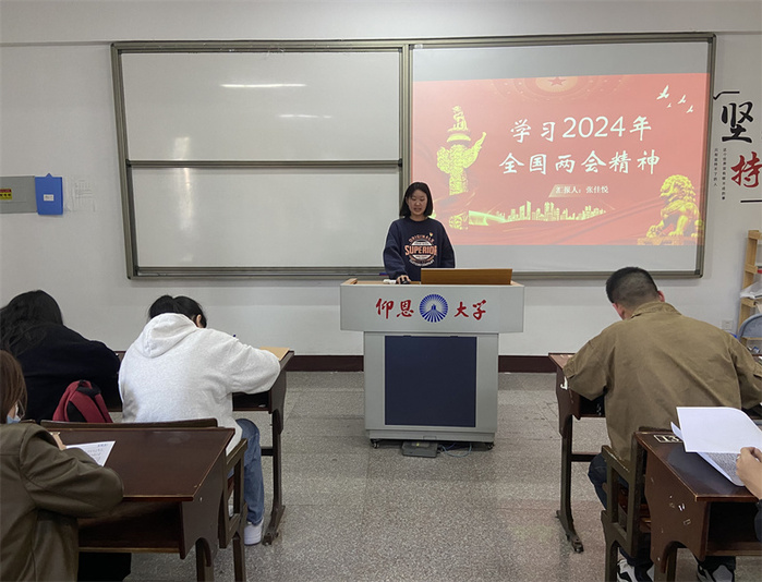 为了深入学习贯彻新时代中国特色社会主义思想,进一步激励学生党员敢于担当、善于作为,3月20日下午,英国beat365官方网站学生党支部于普照楼203教室开展学习2024年全国‘两会’精神”专题学习会,支部全体党员参加。
