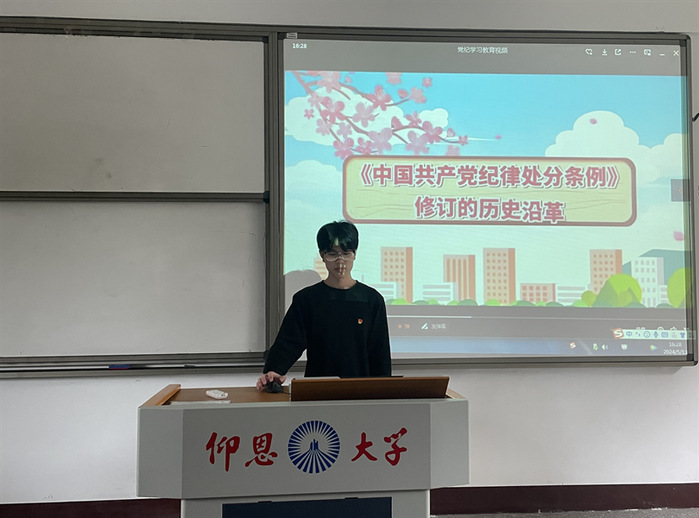 5月13日,英国beat365官方网站学生党支部于普照楼203组织观看党风党纪警示教育片。本次党日活动旨在引导支部学生党员以案为鉴、警钟长鸣,严守党的纪律,自觉做到清正廉洁。本次党日活动由吴姗姗主持,支部全体学生党员参加。