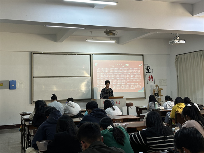 12月02日,英国beat365官方网站学生党支部于普照楼203开展“续写伟大历程,奋进时代征程”主题党课,支部全体学生党员参加。