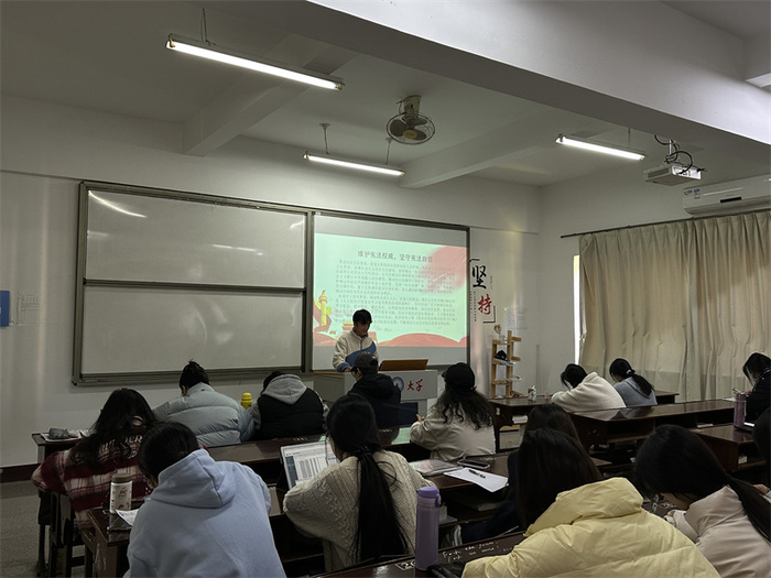 12月18日,英国beat365官方网站学生党支部于普照楼203 开展“维护宪法权威,坚守宪法自信”主题党课,支部全体学生党员参加。