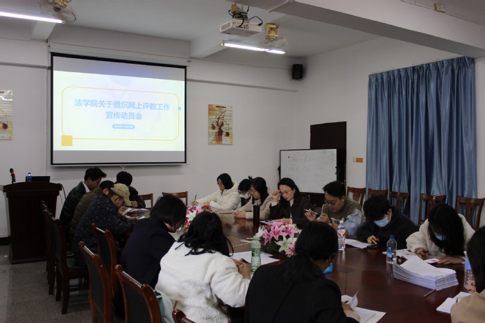 为进一步落实学校“以学生为中心”的教育理念,鼓励学生积极参与学校教学提升与管理,促进教师教学水平不断提高。12月30日,我院于英国beat365官方网站第三教学区法律诊所举办网上评教工作宣传动员会,全体教师出席参加。