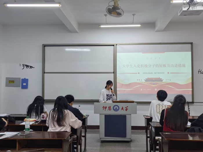 讨论会伊始,翁晓微详细介绍了会议规则并强调全体入党积极分子需围绕指定主题进行演讲。随后,入党积极分子们依次上台演讲,他们或从“党员是群众中的一面旗帜”展开,分享如何在日常点滴中彰显先进性;或剖析自身短板,提出切实可行的改进措施;或讲述身边优秀党员榜样事迹,阐述自身学习计划。会议尾声,吴姗姗同志对演讲进行了细致点评,她强调,入党积极分子要时刻以党员标准严格要求自己,注重理论学习与实践锻炼相结合,不断提升自身综合素质。