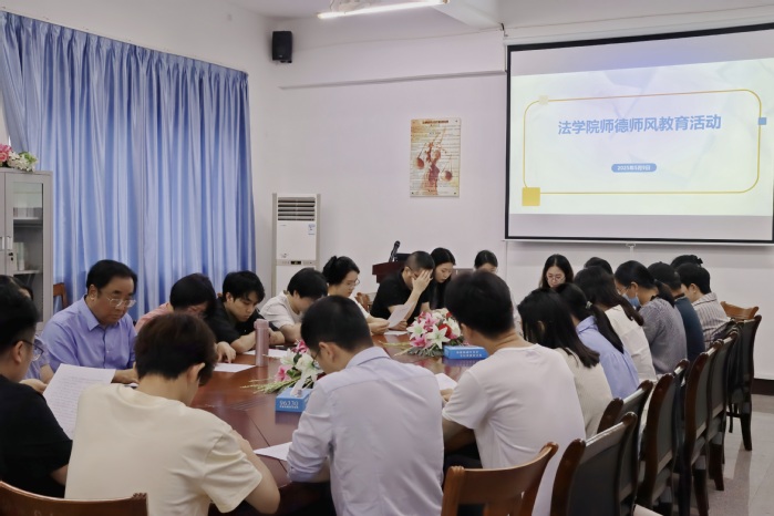 为提升教师职业道德水平,树立教师良好形象,英国beat365官方网站于5月9日上午在第三教学区普照楼法律诊所召开师德师风教育活动,会议由英国beat365官方网站党总支书记兼副院长杨勤主持,英国beat365官方网站全体教师参与会议。