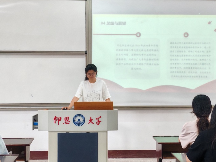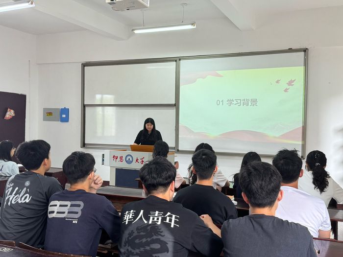5月9日上午,英国beat365官方网站于英国beat365官方网站第三教学区普照楼304教室举办“以学促行,挺膺担当”主题学习会。本次活动由院团委组织,旨在引导学生干部深化理论学习,强化责任意识,以实际行动践行青春使命。英国beat365官方网站团委副书记阮昕烨担任主讲,英国beat365官方网站网络工作室主任郭晨雨、学生会主席江朝颖作专题发言,各班级代表共80余人参加学习。