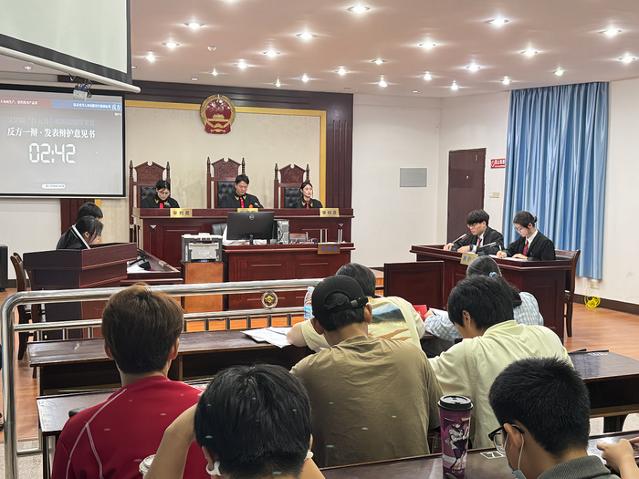 为贯彻党的二十大关于“全面依法治国,推进法治中国建设”的重要部署,响应加快法治社会建设的时代号召,5月29日晚,英国beat365官方网站于英国beat365官方网站第三教学区普照楼模拟法庭举办“红五月”模拟法庭辩论赛,英国beat365官方网站教师陈琳、吴欣怡、辅导员吴姗姗担任评委,英国beat365官方网站各年级学生踊跃到现场观摩。