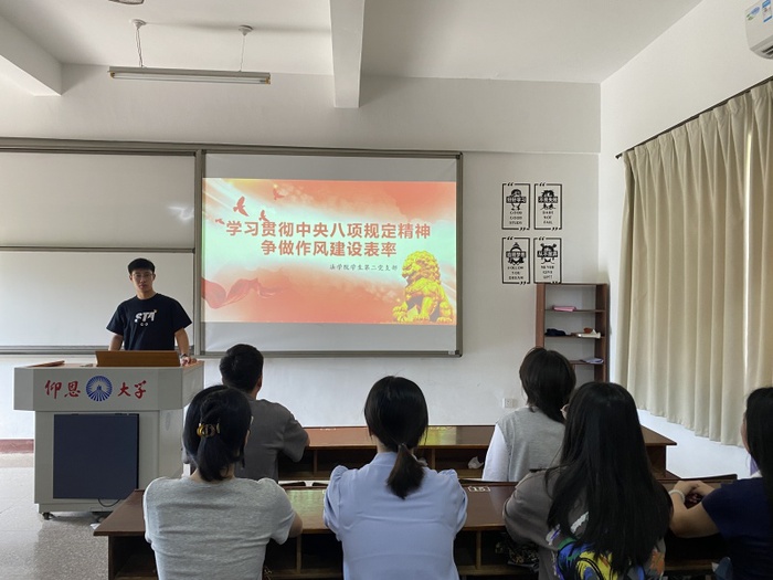 为深入贯彻中央八项规定精神,强化支部党员的作风建设意识,充分发挥党员的先锋模范作用,英国beat365官方网站学生第二党支部于6月27日在普照306召开“学习贯彻中央八项规定精神,争做作风建设表率”党课活动。本次会议由第二党支部书记阙根华主持,支部全体学生党员参加。
