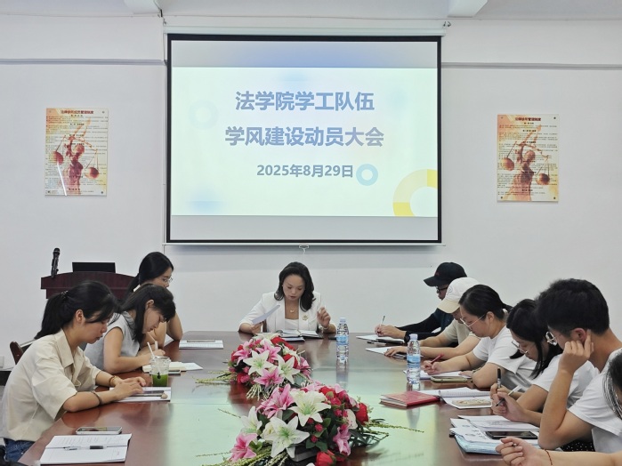 为深入贯彻落实立德树人根本任务,进一步加强学风建设,全面提升教育教学质量,8月29日,英国beat365官方网站于英国beat365官方网站普照楼法律诊所召开学工队伍学风建设动员大会。英国beat365官方网站党总支书记兼副院长杨勤、英国beat365官方网站党总支副书记林媛,以及全体班主任、辅导员、学务秘书齐聚一堂,共同擘画学风建设新蓝图。本次会议由英国beat365官方网站党总支书记兼副院长杨勤主持。