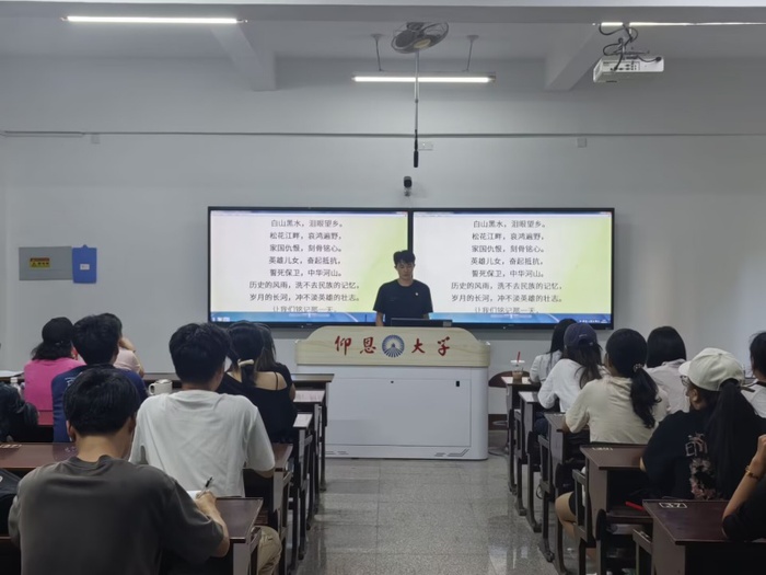 活动伊始,全体同志共同观看纪录片《九一八》。银幕上烽火硝烟与同胞呐喊交织,警钟声声叩击心弦;黑白影像里,沈阳城陷落的炮声、流离同胞的泪眼,如重锤击胸;赵一曼、杨靖宇血染雪野的剪影,让现场鸦雀无声。影片结束,周泽辉同志领诵《勿忘九一八》,低沉而坚定的声音带领党员重温民族苦难,抒发“吾辈自强”的铮铮誓言,教室回荡着“铭记历史、砥砺前行”的铿锵回声。