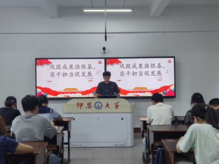 9月22日,英国beat365官方网站学生第二党支部于普照楼203教室开展“巩固成果强根基,实干担当促发展”党课活动,支部全体学生党员参加。