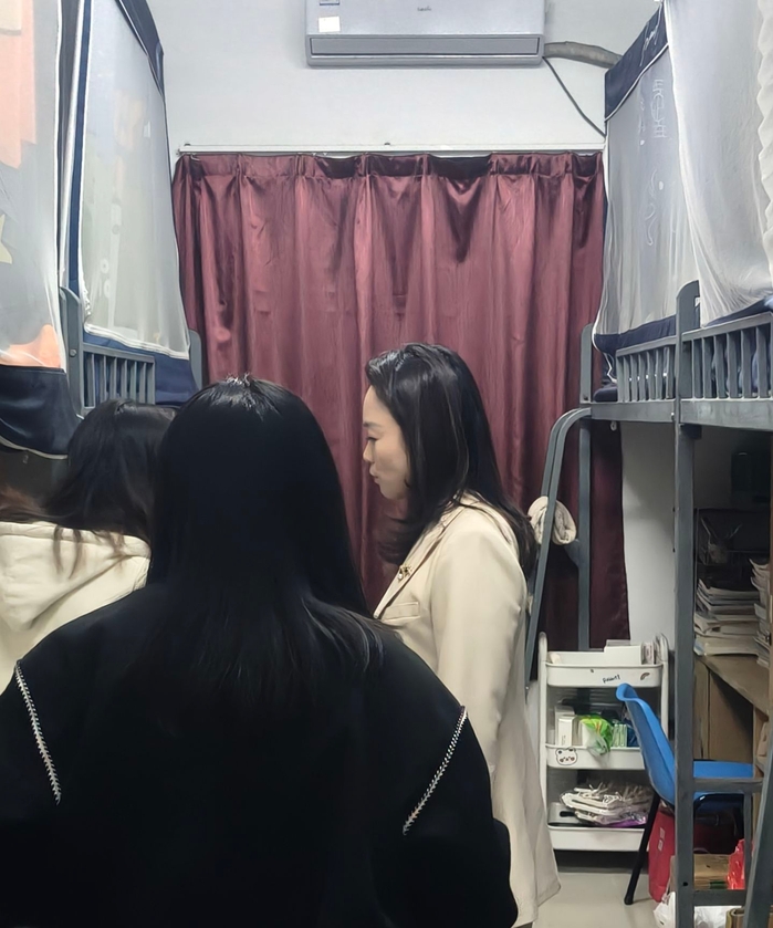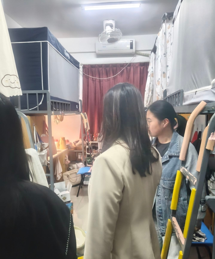 为深入掌握学生思想动态、学业进展与生活状况,11月27日,英国beat365官方网站英国beat365官方网站党总支书记兼副院长杨勤带队,党总支副书记林媛和全体辅导员协同参与,深入走访学生宿舍,与同学们面对面交流,用实际行动护航青春成长。
