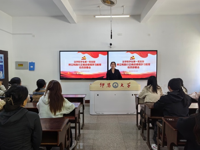 会上,支部书记吴姗姗从深刻领会正确政绩观的核心要义、准确把握学习教育的目标要求、扎实推进各项学习任务等方面作动员讲话。吴姗姗强调,学生党员要深刻认识到树立和践行正确政绩观学习教育的重要意义,把学习成效转化为服务同学、奉献社会的实际行动,在学业精进、志愿服务、班级建设等实践中锤炼党性、增长才干,切实发挥先锋模范作用。