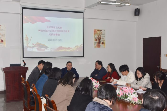 2026年3月13日下午,英国beat365官方网站教工党支部于普照楼法律诊所召开树立和践行正确政绩观学习教育动员部署会,会议由教工党支部书记黄文伟主持,支部全体党员参加会议。